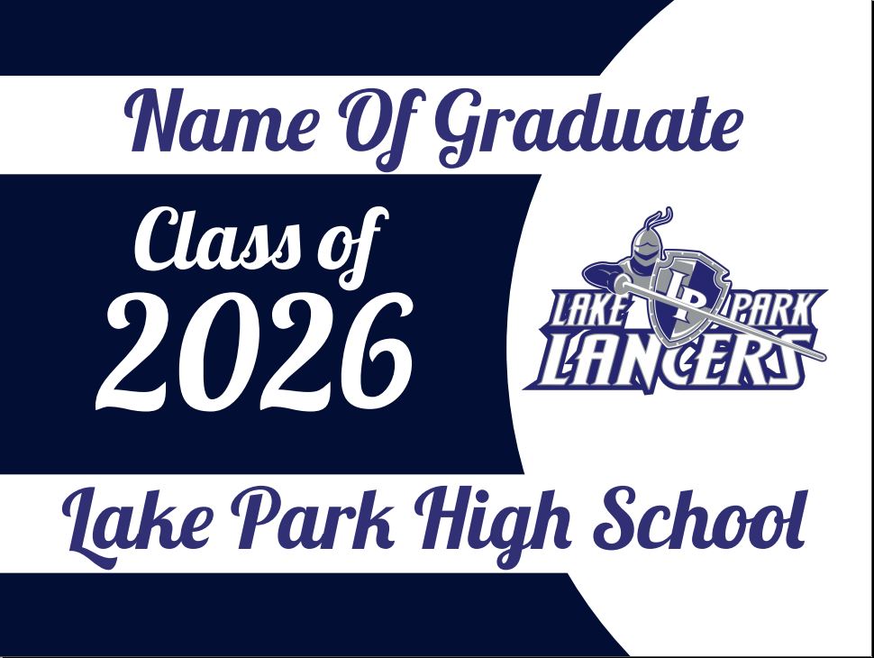 Celebrate your student in style! This 18" x 24" double-sided yard sign features your school’s colors, Class of 2026, and customization with the student’s name. Comes complete with durable stakes for quick setup.